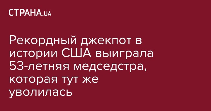 Американка Мэвис Уончик выиграла в лотерее крупнейший джекпот в истории - 758,7 миллионов долларов - и немедленно уволилась из больницы в Массачусетсе, где работала клерком. Об этом пишет газета Guardian