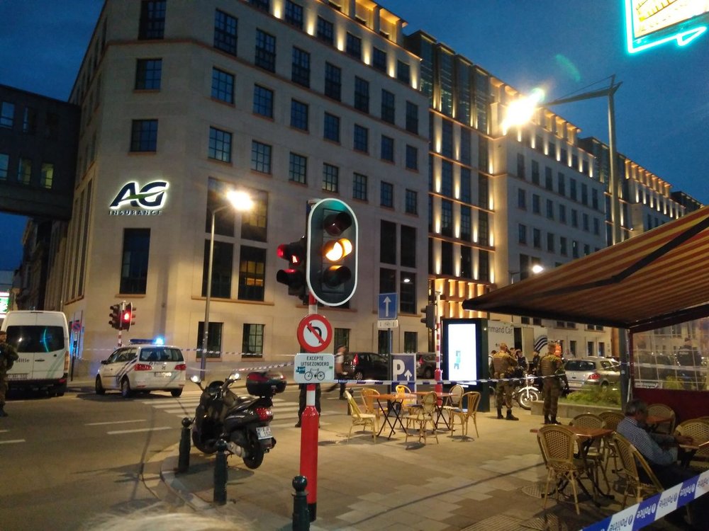 Belgian Police covering the scene after a machete attack ended by retaliating soldiers firing. #Brusselsattack #Brussels #Bruxelles pic.twitter.com/fZRZ6MfTcI
