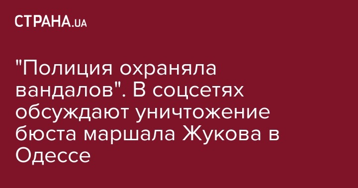 Ранее "Страна" сообщала, что национальная полиция Украины возбудила уголовное дело по факту уничтожения бюста маршалу СССР Георгию Жукову в Одессе 23 августа.