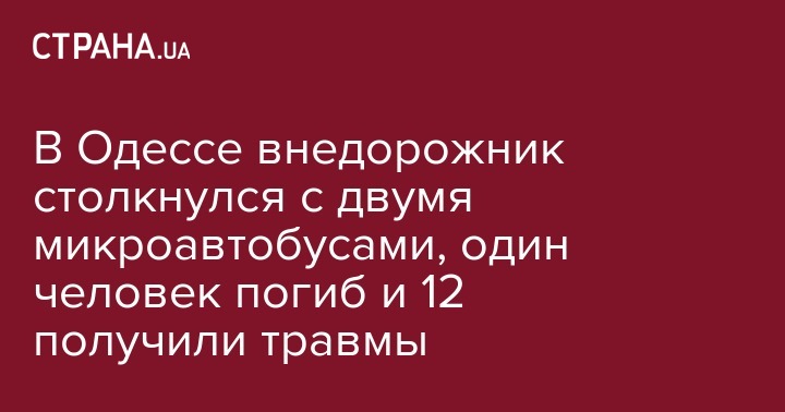 В Одессе в результате столкновения внедорожника и двух пассажирских микроавтобусов один человек погиб и 12 получили травмы, в том числе малолетние дети. Об этом сообщает УНИАН.