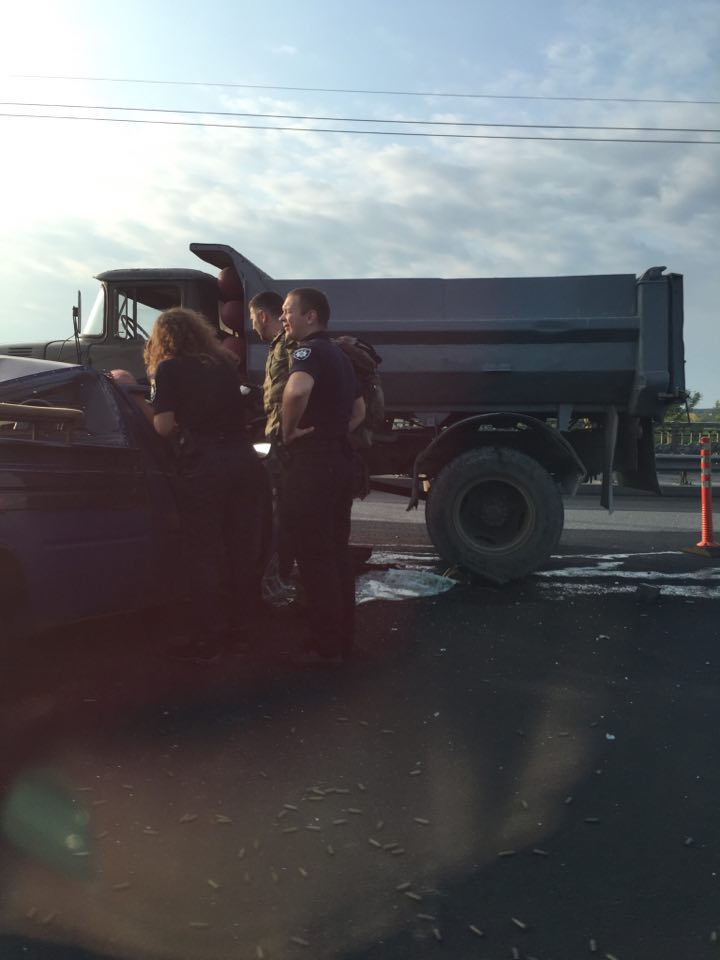 В страшном ДТП на мосту Патона самосвал "смял" "Москвич" в лепешку