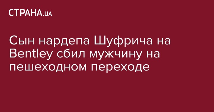 В субботу вечером, 26 августа, сын народного депутата Нестора Шуфрича сбил мужчину на пешеходном переходе на автомобиле Bentley, пострадавший с многочисленными травмами госпитализирован. Об этом сообщила пресс-служба Нестора Шуфрича на странице в Facebook.