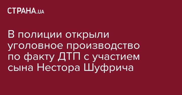 Сегодня, 27 августа, по факту ДТП в Киеве с участием сына народного депутата Нестора Шуфрича полиция открыла уголовное производство. Об этом сообщает пресс-служба Нацполиции Киева в Facebook.