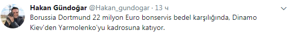 "Боруссия" (Дортмунд) предлагает 22 млн евро за Ярмоленко из "Динамо", - написал Гюндогар.