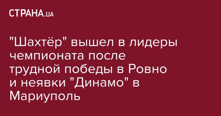 "Шахтёр" вышел в лидеры чемпионата после трудной победы в Ровно и неявки "Динамо" в Мариуполь