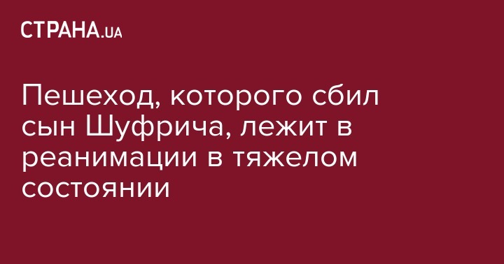 Пешеход, которого сбил сын Шуфрича, лежит в реанимации в тяжелом состоянии