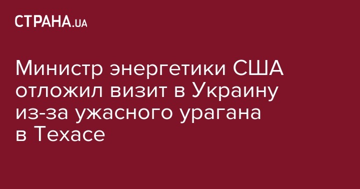 Министр энергетики США отложил визит в Украину из-за ужасного урагана в Техасе
