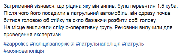 Об этом на Facebook сообщает пресс-служба патрульной полиции Запорожья.