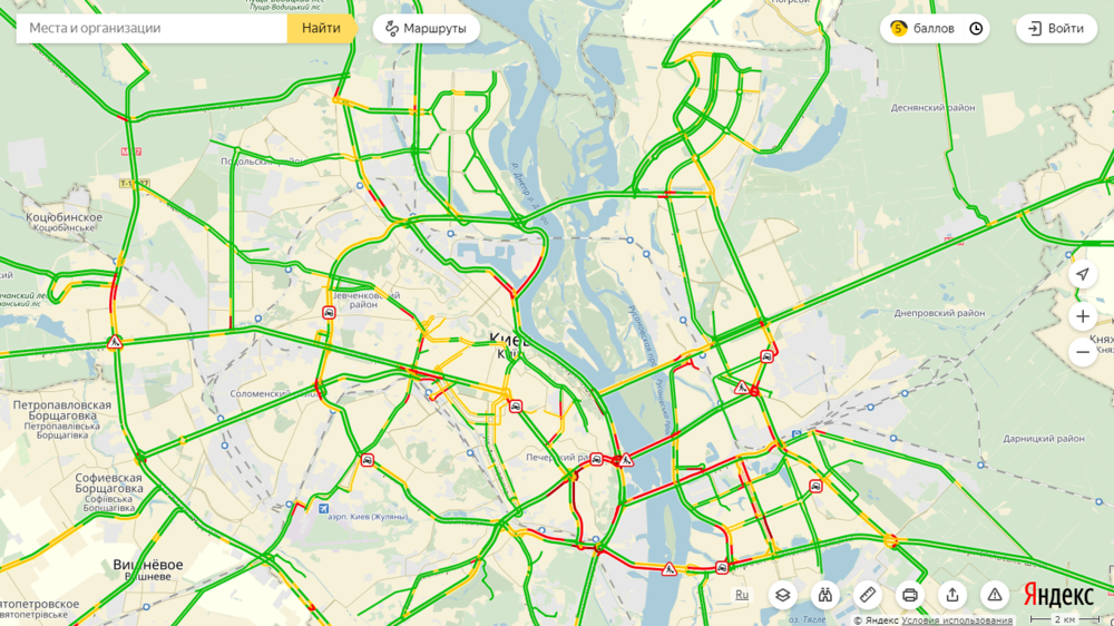 Заторы и тянучки зафиксированы в основном на подъездах к центру. В частности, стоит проспект Победы, бульвары Дружбы народов, Тараса Шевченко и Леси Украинки.