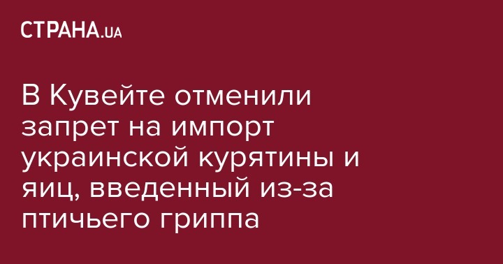 Власти Кувейта сняли временный запрет на импорт продукции птицеводства (мяса птицы и яиц) из Украины. Он был введен из-за случаев высокопатогенного гриппа птицы.