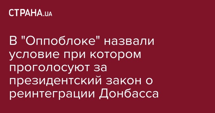В "Оппоблоке" назвали условие при котором проголосуют за президентский закон о реинтеграции Донбасса