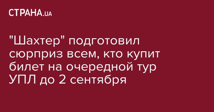 "Шахтер" подготовил сюрприз всем, кто купит билет на очередной тур УПЛ до 2 сентября