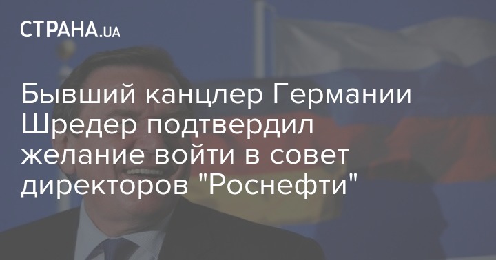 Как сообщала "Страна", экс-канцлер Германии Шредер может возглавить совет директоров Роснефти.