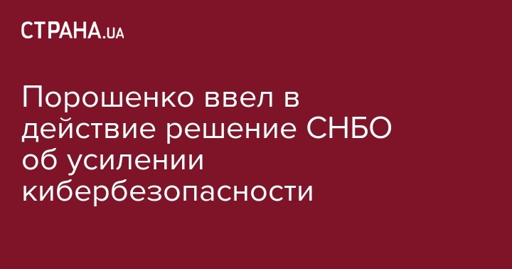 "Ввести в действие решение Совета национальной безопасности и обороны Украины от 10 июля 2017 "О состоянии выполнения решения Совета национальной безопасности и обороны Украины от 29 декабря 2016 "Об угрозах кибербезопасности государства и неотложные меры по их нейтрализации", - сказано в нем.