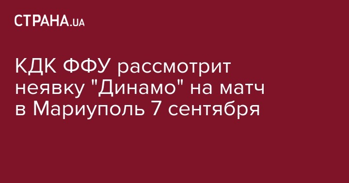 Контрольно-дисциплинарный комитет Федерации футбола Украины (КДК ФФУ) рассмотрит неявку киевского "Динамо" на матч в Мариуполе через неделю, 7 сентября.