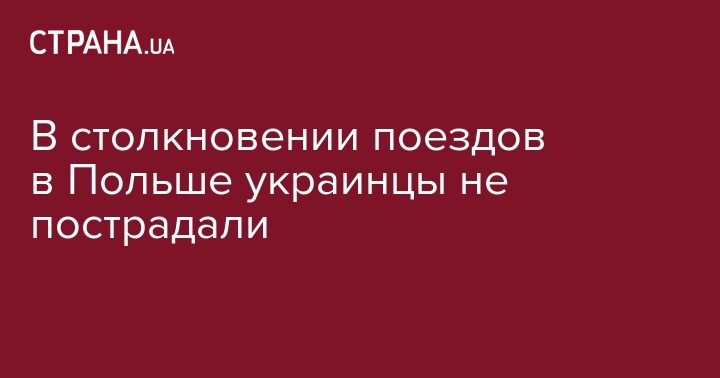 Департамент консульской службы МИД Украины информировал, что при столкновении поездов в Польше украинцы не пострадали. Об этом ведомство сообщило в Twitter.
