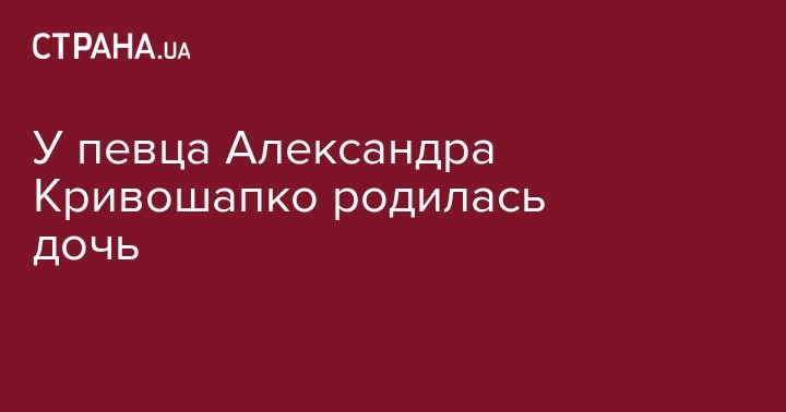 У украинского певца, финалиста вокального шоу "Х-Фактор" Александра Кривошапко родилась дочь. Об этом артист написал на своей странице в социальной сети Instagram и опубликовал трогательное фото с новорожденной.