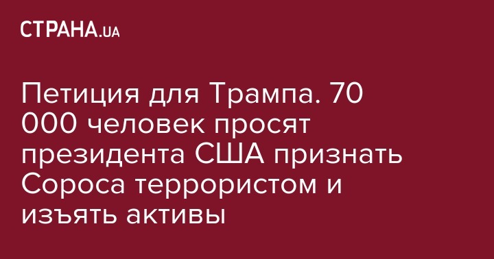 Около 70 тысяч американцев подписали петицию к президенту США Дональду Трампу с просьбой признать миллиардера Джорджа Сороса террористом. Петиция размещена на сайте Белого дома.