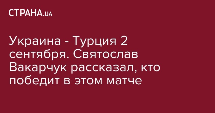 Украина - Турция 2 сентября. Святослав Вакарчук рассказал, кто победит в этом матче