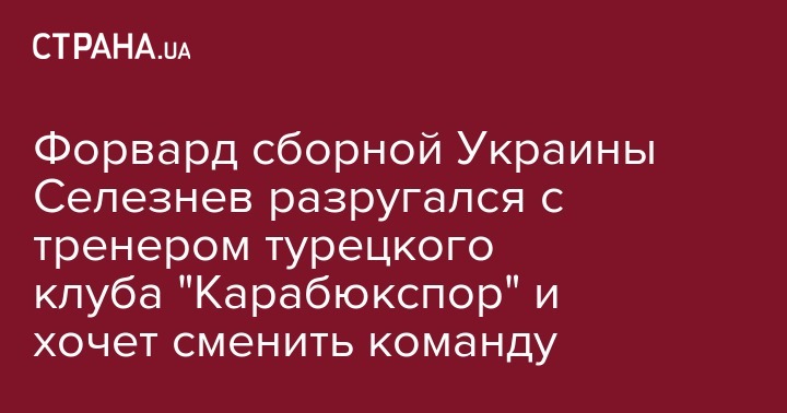 Форвард сборной Украины Селезнев разругался с тренером турецкого клуба "Карабюкспор" и хочет сменить команду