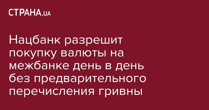 Нацбанк разрешит покупку валюты на межбанке день в день без предварительного перечисления гривны