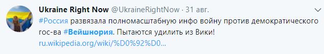 Статью о Вейшнории попытались создать в российской Википедии, но оттуда ее удаляют. Украинские патриотические сообщества тоже помогают "молодой республике" легализоваться на Вики - но пока безуспешно.