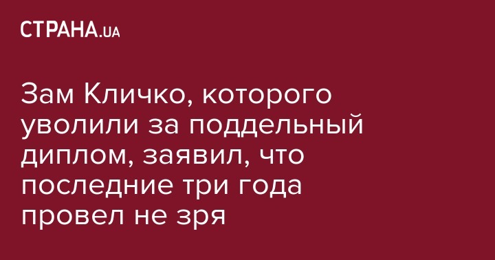 Зам Кличко, которого уволили за поддельный диплом, заявил, что последние три года провел не зря