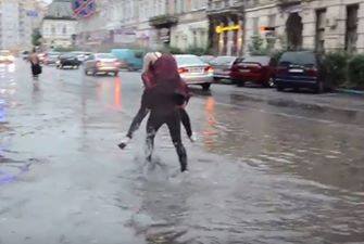 Работник КП "Водоекотехпрома" Владимир Шпег объясняет, что во время сильных и интенсивных осадков, дождевые коллекторы не успевают принимать такое количество воды. Влияет на то, что улицы утопают в воде и то, что к коллекторам попадает листья и грязь.