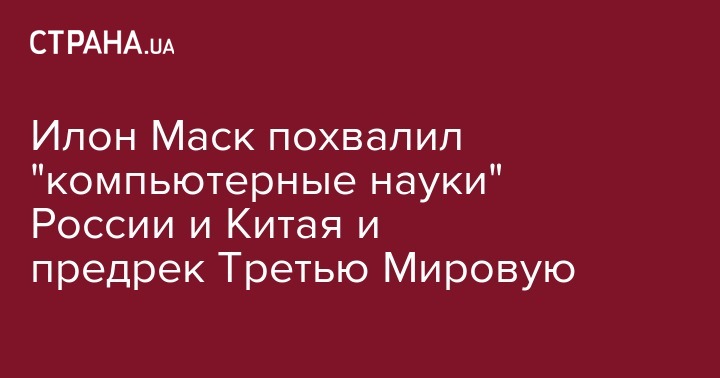 Илон Маск похвалил "компьютерные науки" России и Китая и предрек Третью Мировую