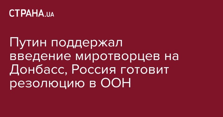 Путин поддержал введение миротворцев на Донбасс, Россия готовит резолюцию в ООН