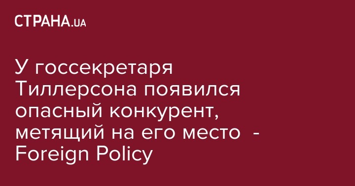 У госсекретаря Тиллерсона появился опасный конкурент, метящий на его место - Foreign Policy