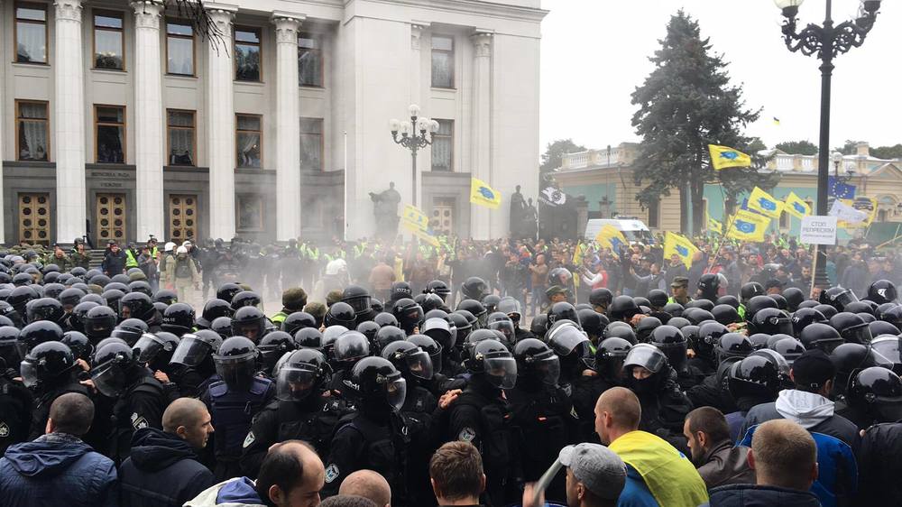 Столкновения начались после того как участники "бляхомайдана" попытались зажечь шины около Рады.