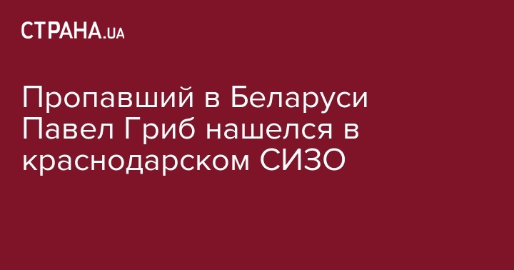 Пропавший 24 августа на территории Беларуси 19-летний украинец, сын сотрудника Госпогранслужбы Павел Гриб нашелся. МИД Украины сообщил его отцу Игорю, что Павел находится в следственном изоляторе российского Краснодара. Об этом УНИАНу рассказал Игорь Гриб.