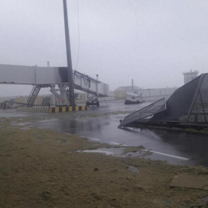 Ураганный ветер сильно повредил крышу аэропорта и взлетно-посадочную полосу. Также стихия вызвала серьезный ущерб внутри главного терминала.