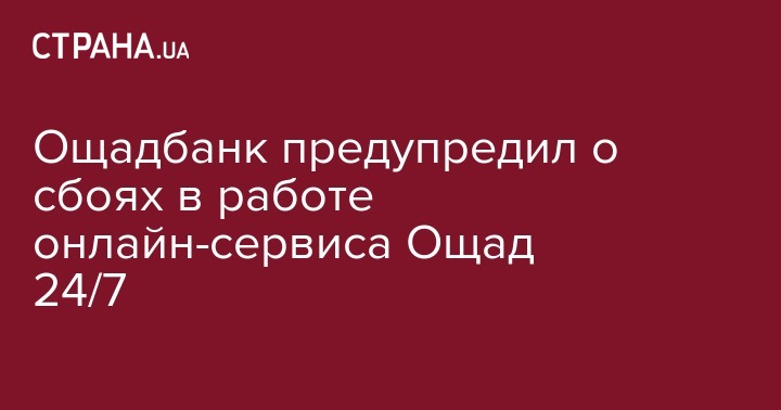 Ощадбанк предупредил о сбоях в работе онлайн-сервиса Ощад 24/7