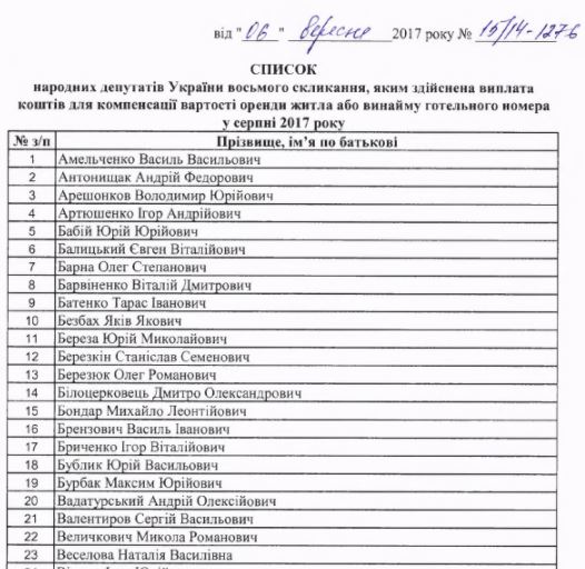 168 депутатов украинского парламента получили компенсацию за аренду жилья или проживание в гостинице в августе. Об этом говорится на сайте Верховной Рады