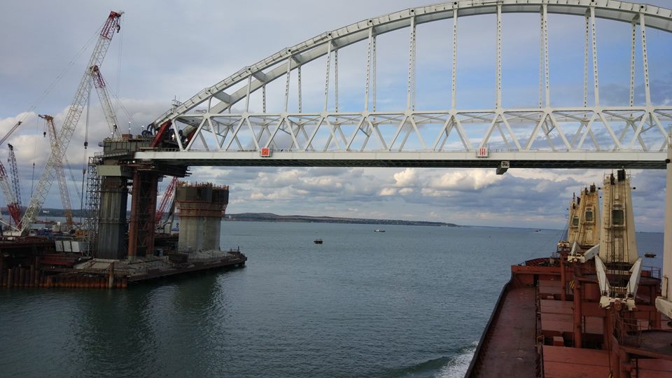 Под Керченским мостом, который Россия строит в Крым, прошло первое судно, которое обслуживалось в Мариупольском порту. Об этом говориться на странице порта в Facebook.