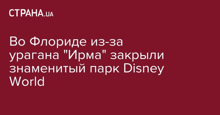 Крупнейший центр развлечений в мире "Диснейуорлд" (Disney World), в американском штате Флорида, закрывают по меньшей мере на два дня в связи с приближающимся ураганом "Ирма". Об этом сообщает Fox Business в twitter.