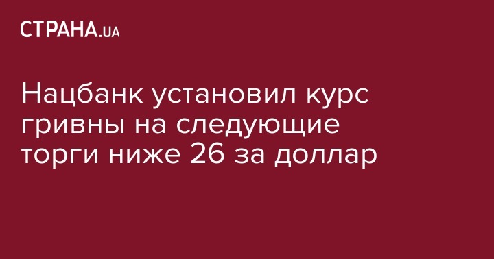 Нацбанк установил курс гривны на следующие торги ниже 26 за доллар