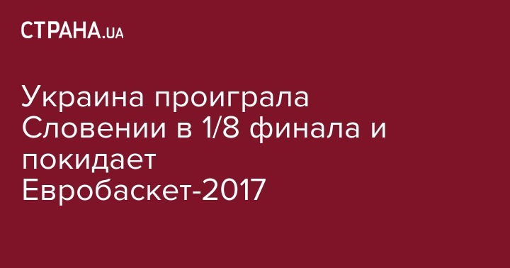 Баскетболисты сборной Украины проиграли в субботу, 9 сентября, одному из фаворитов чемпионата Европы-2017 - команде Словении в 1/8 финала турнира. Об этом сообщает пресс-служба организаторов соревнования.