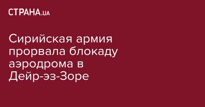 Подразделения правительственных войск Сирии с союзниками прорвали блокаду военного аэродрома в Дейр-эз-Зоре и кварталов Харабеш и Ат-Тахтух, ранее находившиеся под контролем боевиков "Исламского государства". Об этом сообщает агентство SANA.