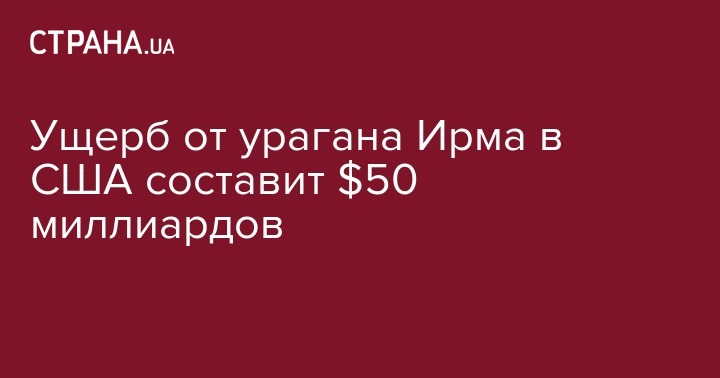 По подсчетам аналитической компании AIR Worlwide, ущерб от урагана Ирма в США может составить от $15 до $50 миллиардов. Об этом сообщает Голос Америки.