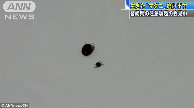 Насекомое, которое является переносчиком буньявируса, было представлено научной общественности и журналистам на конференции в префектуре Миядзаки. Когда один из ученых для наглядности решил подцепить клеща пинцетом, тот исчез. Поиски насекомого в аудитории, где проходило мероприятие, не увенчались успехом.