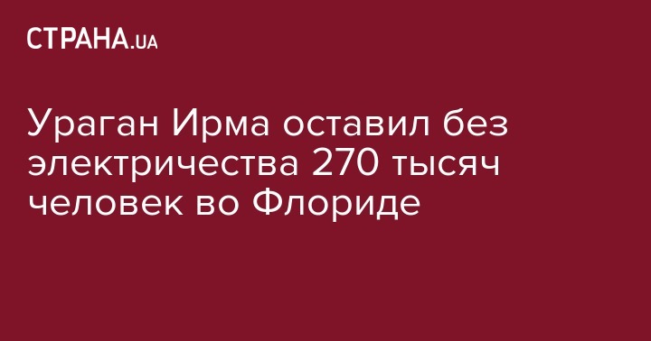 Почти 270 тысяч человек в американском штате Флорида остались без электричества при приближении урагана Ирма, сообщает РИА "Новости" со ссылкой на компанию-поставщика Florida Power & Light.