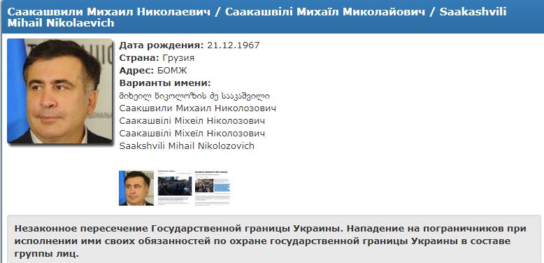 Саакашвили попал на сайт "Миротворца" за прорыв границы