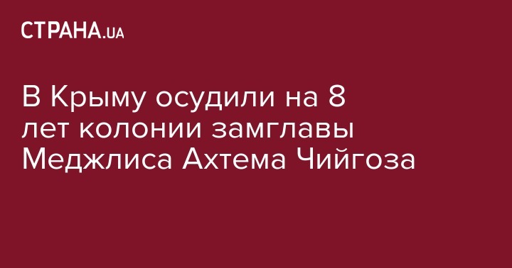 Верховный суд аннексированного Крыма приговорил зампредседателя Меджлиса крымских татар Ахтема Чийгоза к 8 годам заключения в колонии по обвинению в организации массовых беспорядков на митинге 26 февраля 2014 года в Симферополе в преддверие референдума о "вхождении Крыма в состав России". Об этом сообщает "Интерфакса".