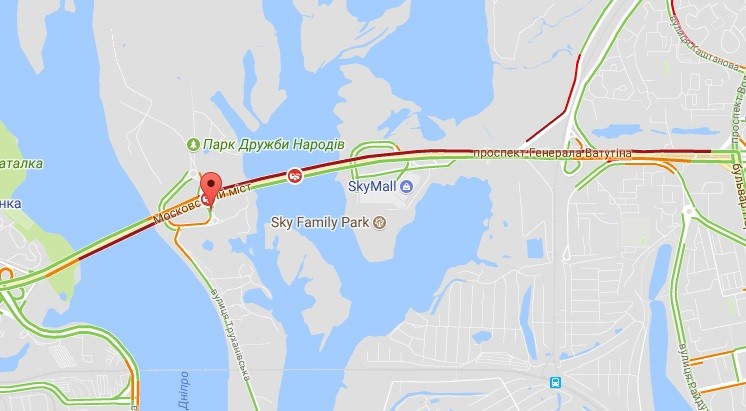 Пробка на Московском мосту Фото: google.com.ua/maps