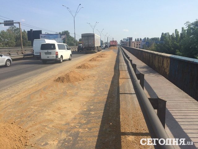В Киеве на Южном мосту из грузовика высыпался комбикорм, что привело к ослажнению движения в правом ряду. Об этом сообщает "Сегодня".