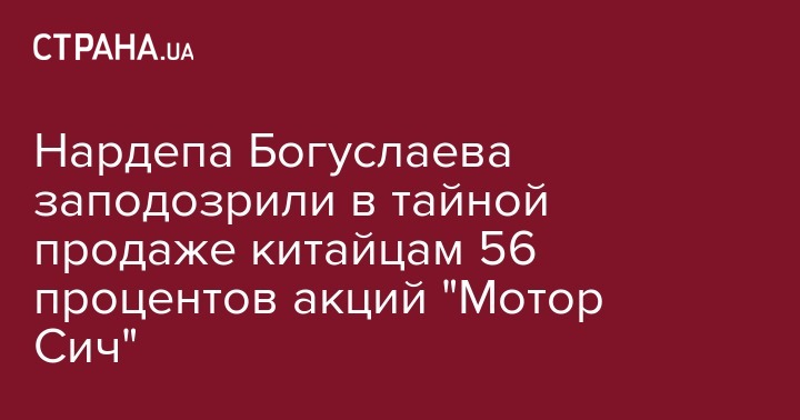 СБУ подозревает народного депутата Вячеслава Богуслаева ("Воля народа") в незаконной продаже 56% акций машинстроительного гиганта "Мотор Сич" китайским инвесторам. Об этом свидетельствует решение Шевченковского районного суда от 7 сентября, сообщает ЛІГА.net.