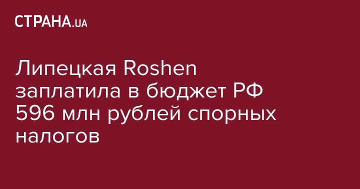 "Это был первый платеж, ранее от кондитерской фабрики Roshen денежные средства не поступали", - заявили в управлении Федеральной налоговой службы по Липецкой области. Поступивший в апреле транш, составил 596 млн рублей.